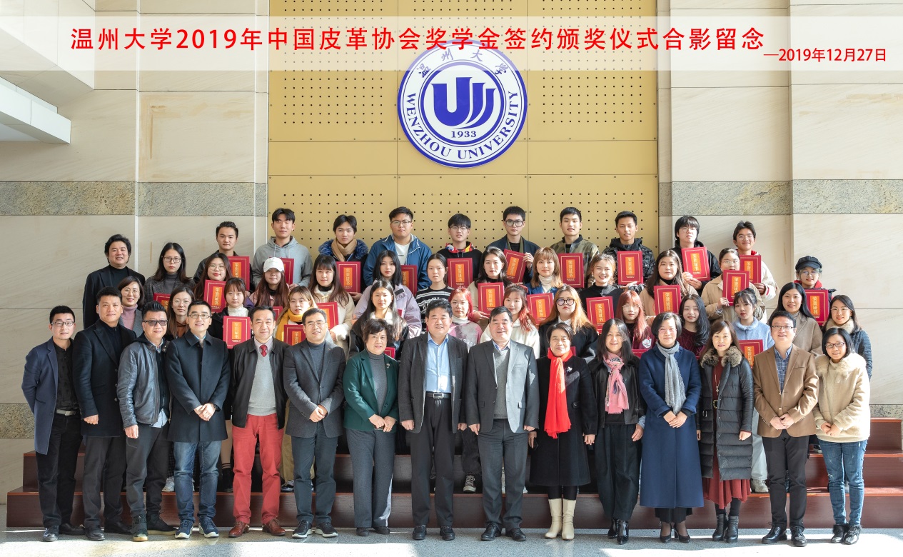 聂玉梅副秘书长代表协会宣读了《温州大学2019年中国皮革协会奖学金获奖名单》。与会嘉宾为34名获奖学生颁发证书和奖金并合影留念。