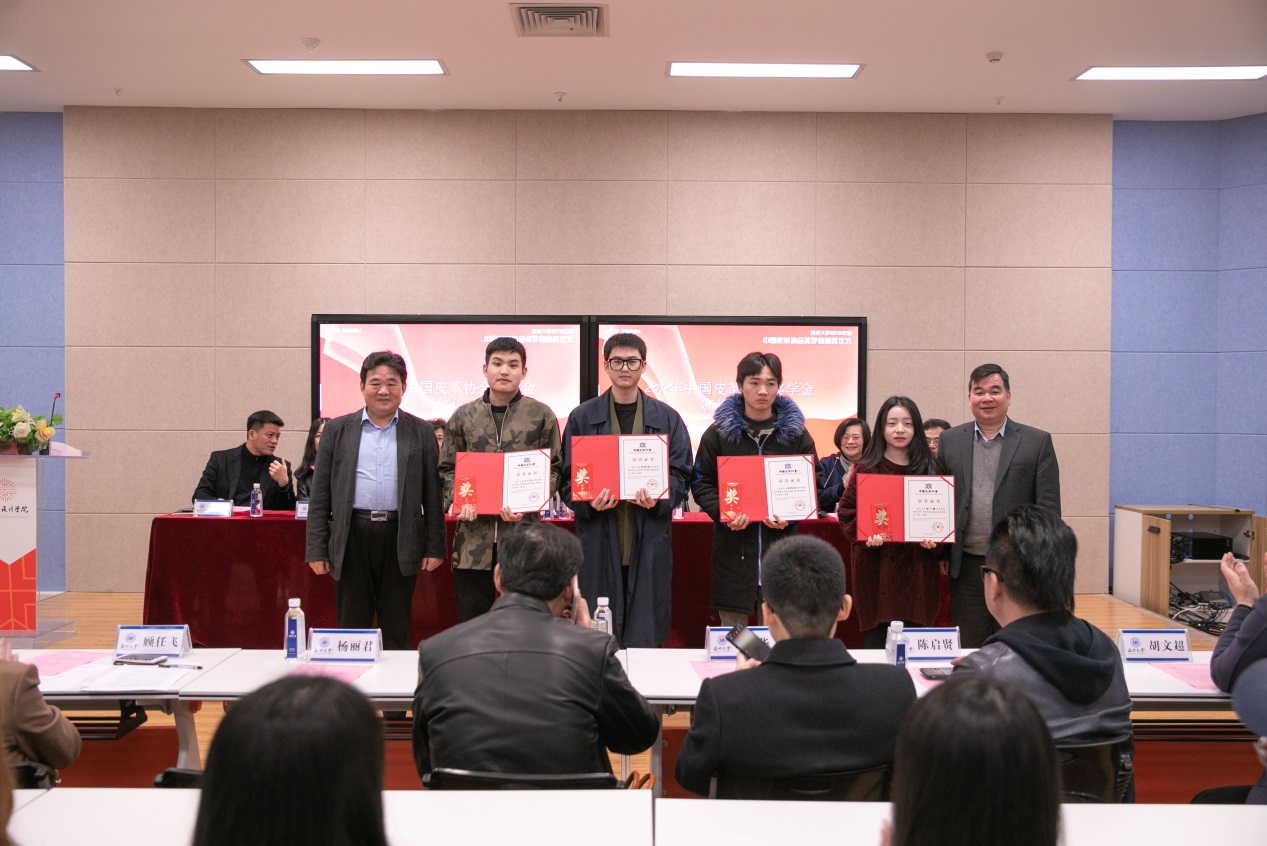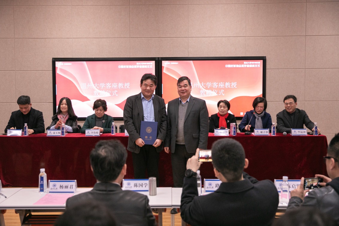 2019年12月27日,温州大学2019年中国皮革协会奖学金签约颁奖仪式在岩松堂叶适厅举行,中国皮革协会理事长李玉中、温州大学副校长徐和昆、中国皮革协会常务副秘书长聂玉梅、浙江省皮革行业协会理事长李伟娟、温州市鞋革行业协会执行会长谢榕芳、亚洲电竞投注平台 党委书记叶正飞、设计学学科带头人李运河、“轻工大国工匠”获得者、上海国学鞋楦设计有限公司董事长陈国学等领导和嘉宾出席,仪式由亚洲电竞投注平台 院长谢子静主持。