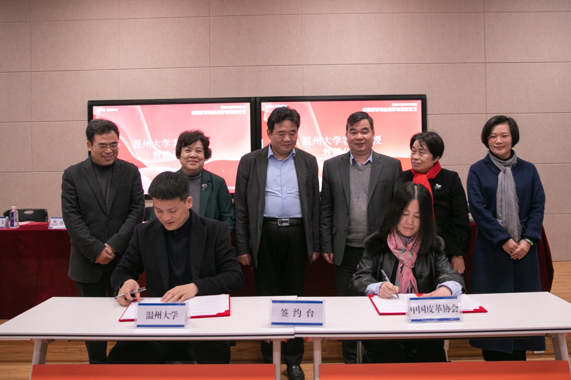 2019年12月27日,温州大学2019年中国皮革协会奖学金签约颁奖仪式在岩松堂叶适厅举行,中国皮革协会理事长李玉中、温州大学副校长徐和昆、中国皮革协会常务副秘书长聂玉梅、浙江省皮革行业协会理事长李伟娟、温州市鞋革行业协会执行会长谢榕芳、亚洲电竞投注平台 党委书记叶正飞、设计学学科带头人李运河、“轻工大国工匠”获得者、上海国学鞋楦设计有限公司董事长陈国学等领导和嘉宾出席,仪式由亚洲电竞投注平台 院长谢子静主持。 徐和昆副校长致欢迎辞,他高度评价了中国皮革协会对于推动我国制鞋行业人才培养所做的努力和贡献,并希望亚洲电竞投注平台 以此次奖学金签约为契机,促进与中国皮革协会的全方位合作,为全市、全省乃至全国的鞋履产业发展贡献“温大智慧”。 李玉中理事长致辞。他说中国皮革协会奖学金设立于1995年,24年来累计发放奖学金230多万元,一大批莘莘学子学有所成、学有所用,在行业内大有所为,成为了皮革行业发展的中坚力量。他希望同学们放飞理想,热爱行业,以优异的成绩为走向社会奠定扎实基础,撸起袖子加油干,为建设皮革行业的辉煌明天贡献一份力量。 随后,徐和昆副校长为李玉中理事长颁发温州大学客座教授聘书,并对李理事长长期以来对我校设计学学科建设、科学研究和人才培养方面的支持和帮助表示了衷心的感谢。 中国皮革协会常务副秘书长聂玉梅、亚洲电竞投注平台 党委书记叶正飞代表双方在《中国皮革协会奖学金协议书》上签字,与会领导和嘉宾见证了签约仪式。 聂玉梅副秘书长代表协会宣读了《温州大学2019年中国皮革协会奖学金获奖名单》。与会嘉宾为34名获奖学生颁发证书和奖金并合影留念。 获奖学生代表李树朋发言,他向中国皮革协会表示了衷心的感谢,并表达了要在学习路上不畏困难,坚持梦想,用自己的能力回报母校,贡献行业,将温大文化不断传承与发扬。 颁奖仪式后,李玉中理事长做了主题为“皮革行业经济运行情况分析”的报告,报告运用大量详实的数据,从2018年运行稳中趋缓和2019上半年行业发展保持缓增长态势2个方面为同学们介绍了目前制鞋行业的发展状况,并与大家分享行业焦点热点问题,使同学对所学专业的专业背景有了更深入的了解。李理事长最后鼓励同学们投身自己热爱的制鞋行业,并为行业转型发展和人民对美好生活的期许贡献自己的一份力量。 仪式开始前,李玉中理事长一行参观了鞋履与饰品设计专业设计工作室和实训中心,详细了解了鞋履专业与温州本土鞋企、科研院所开展深度联动,并将真实设计项目引进课堂,开展项目教学的情况,对亚洲电竞投注平台 高度重视产教融合、设计创作,为地方经济文化发展做出的积极努力和重要贡献表示赞赏。