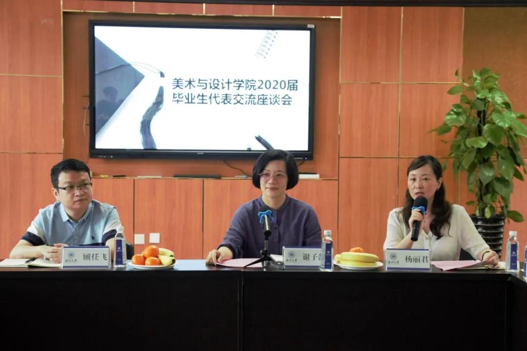 伊始,毕业生代表交流座谈会进入第一项议程。与会11名优秀毕业生们发言畅谈对大学生活的感悟,总结在校求学的丰硕收获,表达了对母校悉心栽培的诚挚感谢、衷心祝福与眷恋之情,也展望了未来的毕业规划与憧憬理想。其中17级课程教学论专业的研究生安亚锋表示自己对于温大有着深厚的感情,毕业后于欧江电竞博彩平台 任职辅导员,也会时常回来看看美院这个大家庭;18级学科教学专业的研究生黄娇表示虽然短短两年时间但却有不少的收获,并且未来也将在教育电竞博彩平台 任职辅导员继续努力为母校作出贡献;16级服装与设计专业的毕业生陆安分享了自己创业道路上的成长经验并对专业老师的指点与帮助表示诚挚感谢;16级美术师范专业的毕业生胡瑞明交流分享了自己的考研心路历程上的总结感想……座谈会上,杨唯、马婷婷、刘子彰、程子鹏、谢遵宪、徐宏博、胡梓涵等毕业生代表也先后发言。毕业生们纷纷分享了母校带给自己的烙印和打下的基础,感言中饱含对母校的深挚情感,表示在温大美院学习的经历是人生中宝贵的记忆和经历,值得用一生去收藏体悟,在将来的学习生活工作中将始终保持奋发有为的精神状态,不辜负老师们的培养和教育,用实际行动创造美好未来。