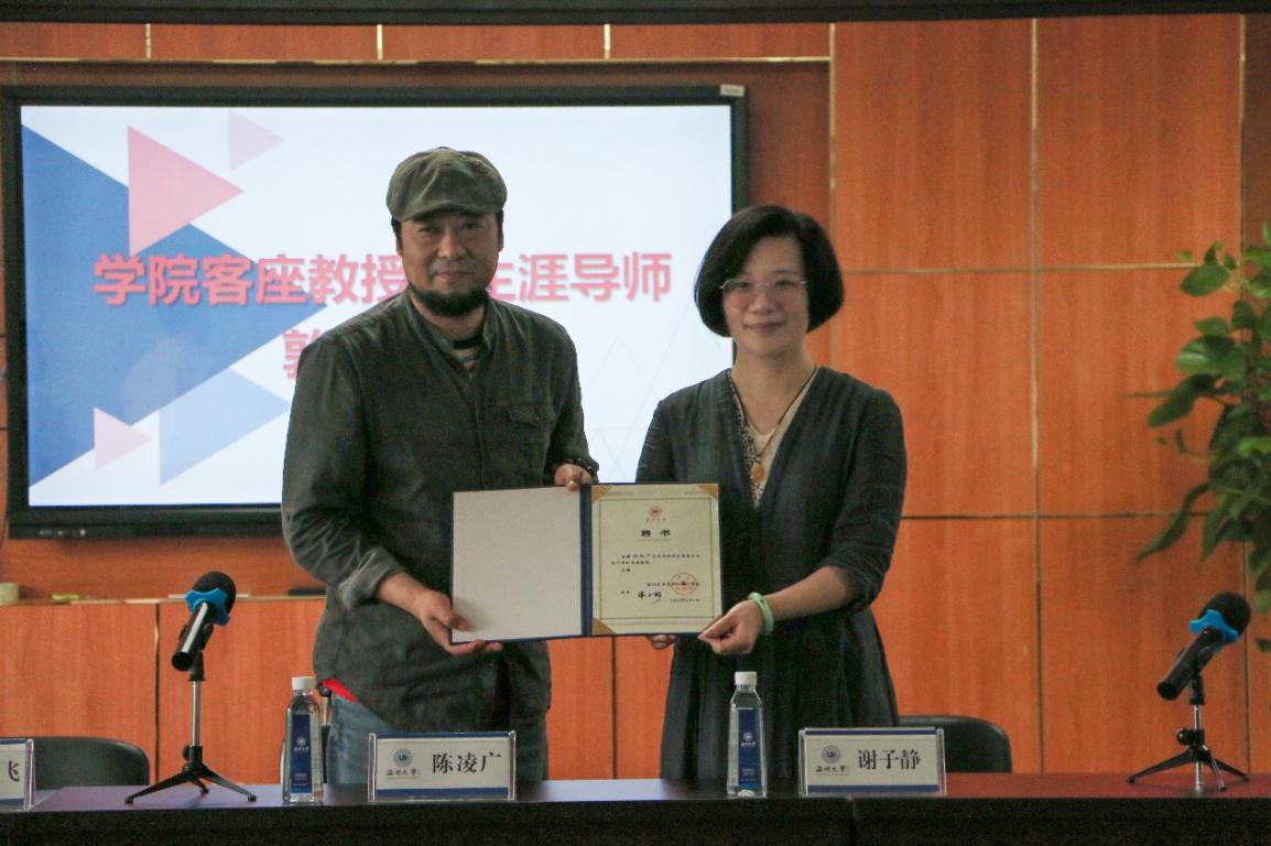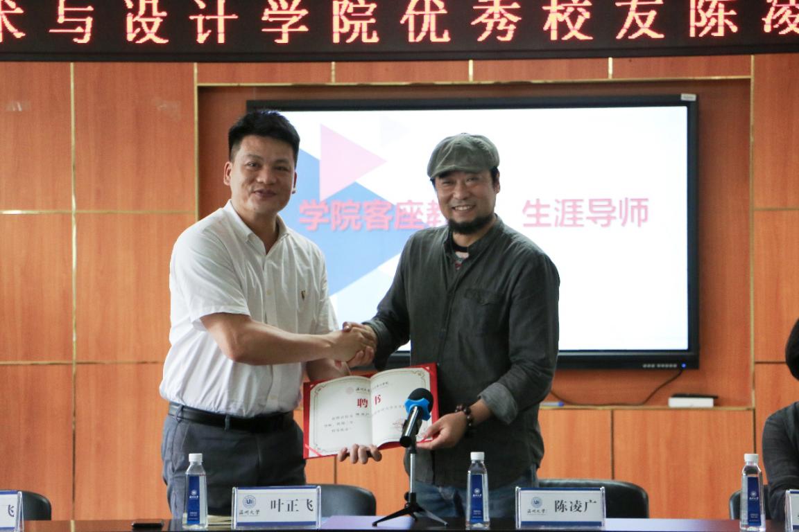 2020年6月4日,陈凌广教授于电竞博彩平台-亚洲电竞投注平台 2B4001进行了校友交流讲座。 陈凌广教授于1991年毕业于温州师范电竞博彩平台 (现温州大学)美术系,2010年研究生毕业于中国美术电竞博彩平台 ,获艺术硕士学位;2008年中央美术电竞博彩平台 中国画电竞博彩平台 访问学者,2018年佛罗伦萨美术电竞博彩平台 访问学者。陈凌广教授主要从事中国画当代艺术表现、传统村落传承保护与活化两大领域研究。他的作品荣获第15届中日水墨画协会年度展金奖,并在意大利佛罗伦萨等10余国家举办个展和联展。 在校友交流指导的现场,谢子静院长,叶正飞书记,顾任飞副院长,杨丽君书记与同学们热切欢迎陈凌广教授的到来。谢子静院长与叶正飞书记分别为陈凌广教授颁发了电竞博彩平台-亚洲电竞投注平台 客座教授聘书与电竞博彩平台-亚洲电竞投注平台 生涯规划导师的聘书。 陈凌广教授回忆了往昔探索美术的经历:大学时期,他在温州师范电竞博彩平台 (现温州大学)学习美术教育,毕业分配做美术教师。而后,在努力建设教育之余,陈校友也沉心浸入美术研究之中,悉心探索。求学国美央美,访学意大利等都给他留下了深刻的印象。在对乡村古建筑的传承研究与保护中,他看到了中国的民间历史和故事,化为自己的创作元素。他说:“对于古建筑,你能在一个斑驳的房屋空间里,看到历史沉淀的美,在这个物理空间里,不仅留下了中国的文化价值和中国人的身份认同,更让人多了一份乡愁。”在陈校友身上,我们感受到了对艺术的不懈研究与探索,更感受到了对中国当代艺术的执着追求。 “成功是不能复制的,但成功是可以学习与借鉴的。”希望同学们能够在陈凌广教授的经历与话语中得到启发,为中华当代之艺术而努力钻研。