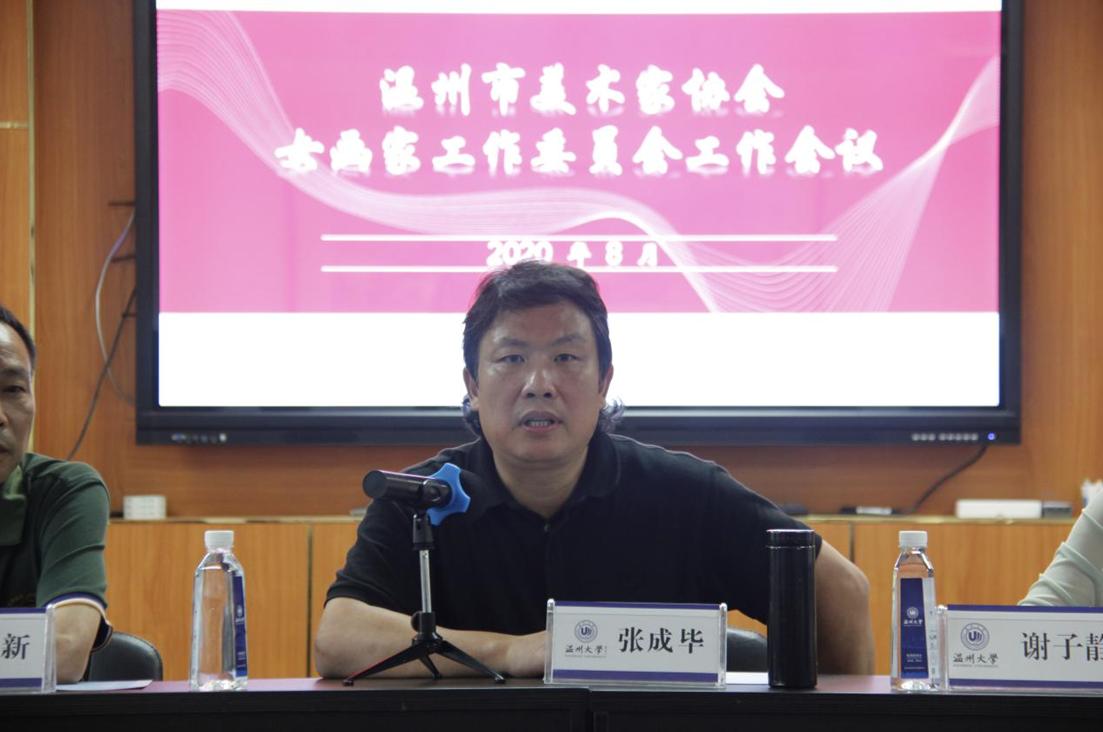 2020年8月7日下午,温州市美术家协会女画家工作委员会工作会议在亚洲电竞投注平台 举行。中国美协理事、市美协主席张成毕出席会议。亚洲电竞投注平台 党委书记叶正飞、校工会副主席陈文远到会祝贺,叶书记致辞并介绍了美院的办学情况。出席会议的还有市美协秘书长潘新新、副秘书长金婧婧、常务理事叶海华等。会议由市美协副秘书长、女画家工作委员会秘书长林翼如主持。