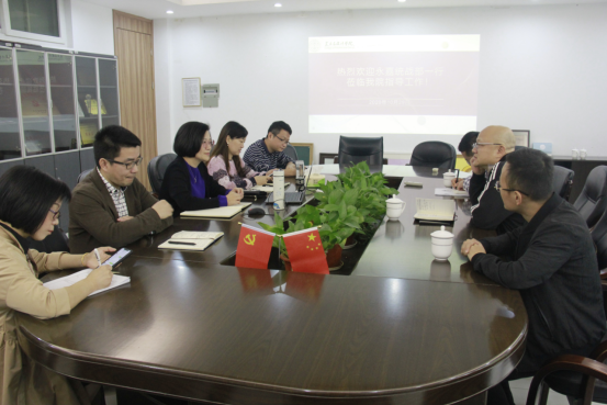 2020年10月29日,永嘉统战部副部长郑焕益、党派科科长金文通、乡贤工作负责人陈炳一行来亚洲电竞投注平台 交流工作,院长谢子静、副书记杨丽君、副院长胡文超、顾任飞、院办主任张丽出席会议。