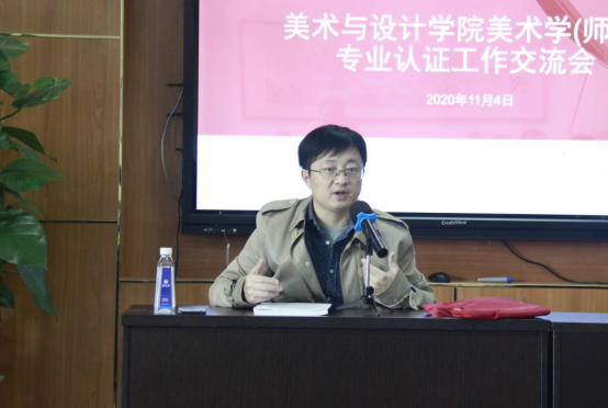 2020年11月4日,苏州大学艺术电竞博彩平台 美术系主任陈铮教授应邀来亚洲电竞投注平台 指导美术学师范专业认证工作,院长谢子静、电竞博彩平台 党委书记叶正飞、副院长胡文超出席会议,美术系全体教师及相关教师参加会议。 首先,谢子静院长代表电竞博彩平台 对陈铮教授的到来表示热烈欢迎,同时,围绕着美术学学科建设、专业建设以及人才培养质量等电竞博彩平台 发展的基本情况作了重点介绍。她表示,亚洲电竞投注平台 与苏州大学艺术电竞博彩平台 的办学情况有着很大的共通性,双方的沟通交流更有着长期且深厚的基础。苏州大学艺术电竞博彩平台 美术学专业顺利通过师范专业认证,对亚洲电竞投注平台 美术学专业师范认证是一大鼓舞。苏州大学的成功经验,也必将为亚洲电竞投注平台 师范专业认证起到良好的学习和借鉴作用。 随后,陈铮教授结合苏州大学美术学师范专业认证工作的实践经历进行了经验分享。他从教师身份和专业使命出发,明确师范专业认证的意义和重要性。以认证准备工作为着手点,提出厘清各级组织的工作任务和职责是认证工作顺利开展和持续推进的前提。深刻剖析OBE理念,明确人才培养方案设计的重大作用,提出坚持以学生为中心的课程设置和以产出导向的反向设计理念,并明确要以五年为基准形成改革闭环的中长期计划,持续推进师范专业认证工作。 最后,叶正飞书记作总结讲话。他表示,陈铮教授对专业认证工作的深入分析和倾囊相授的宝贵经验,不仅让亚洲电竞投注平台 教师在政策领会和宏观认识上有了更加清晰的思路和目标,更是结合了亚洲电竞投注平台 师范认证工作的实际情况进行对标分析、给出指导建议,内容全面丰富、切合实际,全体与会教师受益匪浅。他指出,美术学师范专业认证工作是事关电竞博彩平台 发展的大事,每一位教师应统一思想,明确目标,凝心聚力保证认证工作的顺利完成。 会后,陈铮教授与美术系教师围绕着师范认证的具体工作进行了深入沟通和交流。