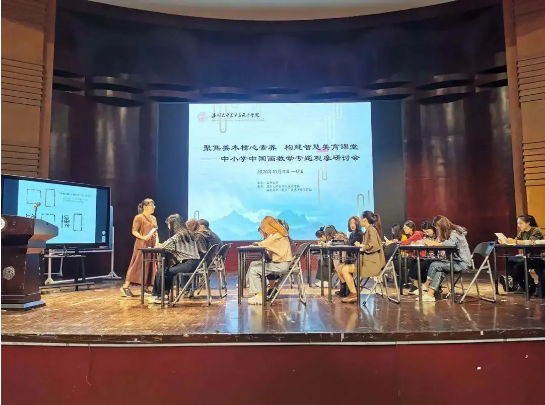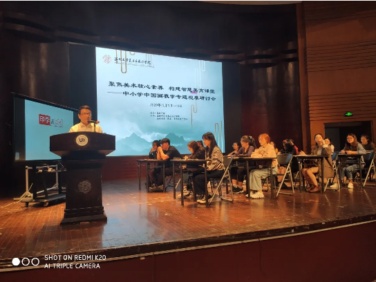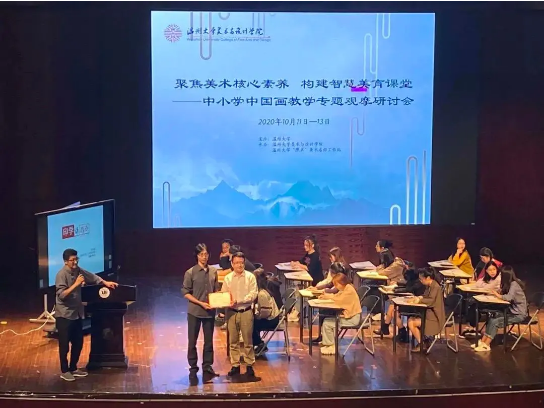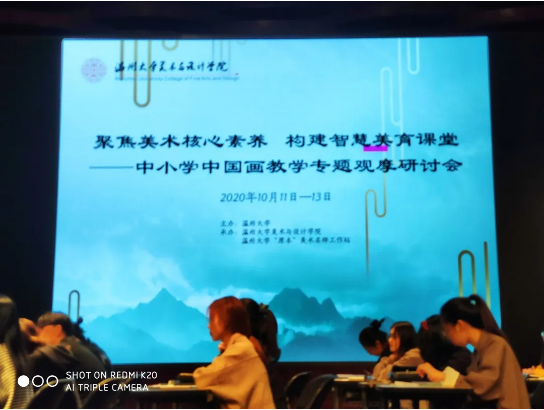 “画阑开处冠中秋”,桂子飘香美院传。2020年10月11日,聚焦美术核心素养,构建智慧美育课堂---中小学中国画教学专题观摩研讨会在在温州大学南校音乐厅举行,研讨会安排了课堂教学展示,主题讲座,名师经验交流等环节,内容丰富、形式多样、深入探讨了美术教育当前所需要关注的美术核心素养以及对于中国画在课堂上的渗透和教法等教学问题。