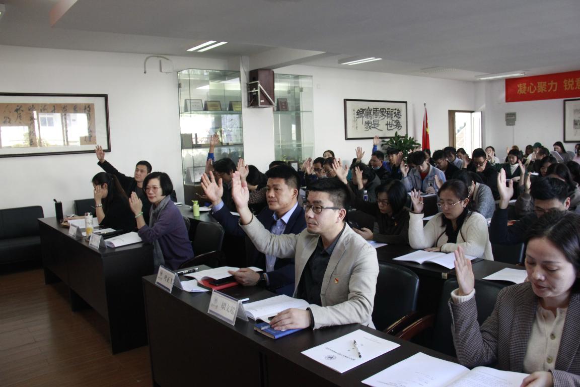 开幕式结束后,“两委”换届选举正式举行,大会以举手表决的形式,全票审议通过了电竞博彩平台 党委、纪委工作报告(书面)和电竞博彩平台 党费收缴、使用、管理情况的报告(书面),并最终差额选举产生了新一届党委委员和纪委委员。