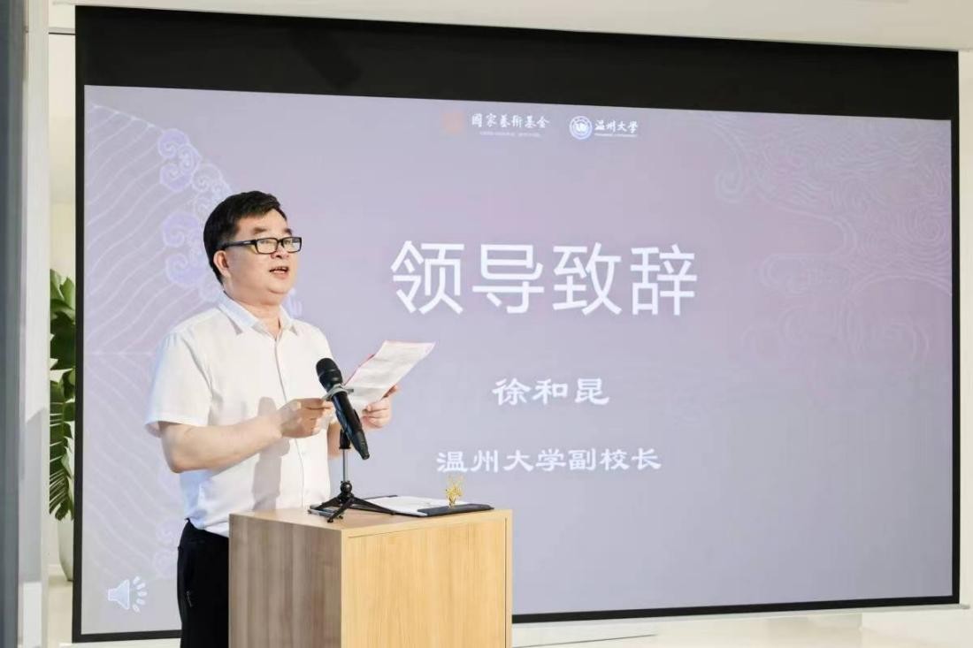 徐和昆副校长致辞。温州大学是浙南闽北赣东区域唯一的综合性教学研究型大学,艺术教育底蕴深厚,实力突出,本次展览在国家艺术基金项目的大力资助下,必将进一步推进温州非遗人才培养,促进浙江工艺美术薪火相传,为中国刺绣艺术事业发展作出更大的贡献。
