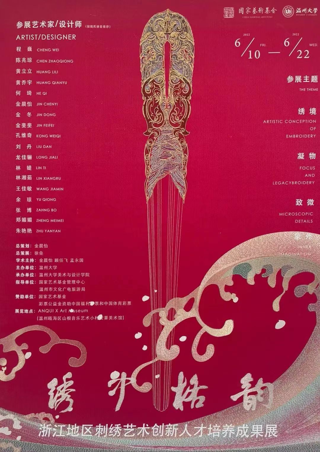 6月10日上午,国家艺术基金2020年度艺术人才培养资助项目“浙江地区刺绣艺术创新人才培养成果展”在Anqui x Art museum(山根音乐艺术小村安葵美术馆)开幕,温州大学副校长徐和昆、温州市文化广电旅游局副局长李方喜、浙江省民间文艺家协会主席杭间、电竞博彩平台-亚洲电竞投注平台 院长谢子静等领导和专家、以及来自全国各地的刺绣非遗传承人50余人出席开幕式。