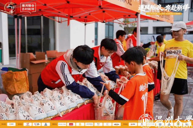 活动的温暖不仅在于奔跑本身,更在于无微不至的后勤保障。完赛后,同学们领取了颇具纪念意义的完赛证书。现场更设有丰富的物资补给站,水果、点心、饮料等应有尽有,同学们还惊喜地领取到了当地特色的花雕酒、大米和平阳粉干,实实在在地“满载而归”。