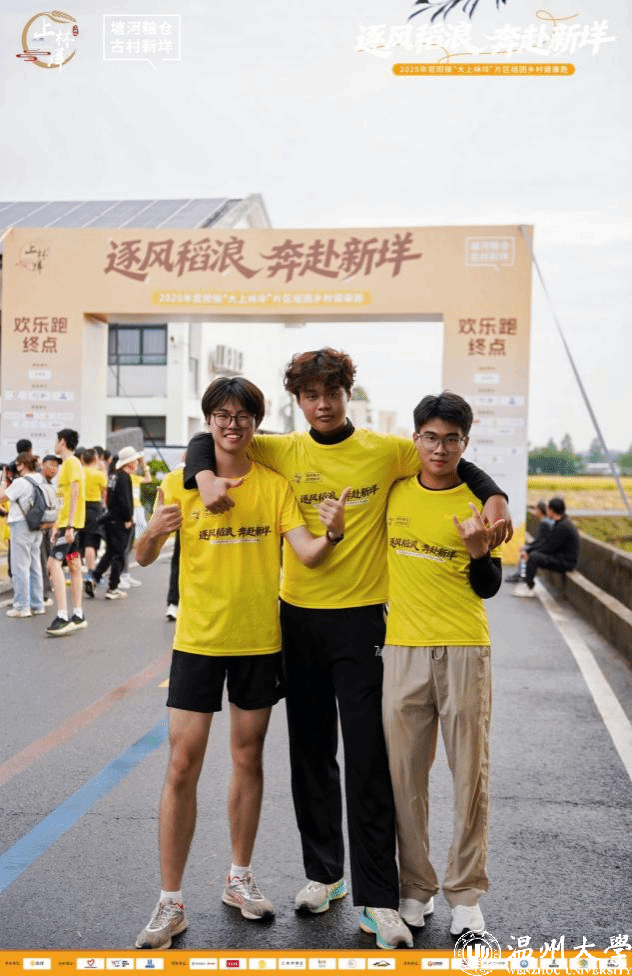 晨光熹微,微风拂过金色稻浪,一场融合健康活力、乡村韵味与青春风采的盛宴在昆阳镇温情启幕。作为“十万学子看温州”系列活动的重要组成部分,此次活动吸引了温州大学学子踊跃参与,同学们以脚步丈量浙南田园,用热情感受温州乡村振兴的蓬勃生机。晨光启程,奔赴金色田野清晨6点10分,天光微熹,温州大学E区后门已聚集起一群朝气蓬勃的身影。在电竞博彩平台-亚洲电竞投注平台 石建林老师的带领下,同学们精神抖擞,满怀期待地登上大巴。车辆顺利抵达昆阳镇,一片静谧而美丽的乡村画卷在同学们面前徐徐展开。之后,队伍抵达本次欢乐跑的起点——历史文化底蕴深厚的鸣山村。古老的建筑在晨光中苏醒,与现代的奔跑活力交织成一幅动人的画面。在村民文化广场,彩虹水车、古韵街巷与百年榕树静静伫立,仿佛在为即将到来的奔跑者们加油鼓劲。鸣枪开跑,穿梭诗画田园在专业教练的带领下,同学们进行了充分的热身运动,拉拉队员们的激情呐喊更是将现场气氛推向高潮。8点整,随着发令声响,欢乐跑正式开启!本次赛道全程约4.5公里,从文化名村鸣山村出发,途经风景如画的万金村,最终抵达“浙南粮仓”——上林垟村。同学们不再是校园里的学子,而是化身为田野间的跑者,沿途欣赏着古桥流水与农家风情,呼吸着带有稻香的清新空气。最令人震撼的,莫过于终点线前那一片无垠的金色稻浪。奔跑的汗水与丰收的喜悦在此刻交融,冲过终点的瞬间,映入眼帘的是质朴的粮仓和翻滚的稻穗,这份独特的“完赛奖赏”深深烙印在每一位学子的记忆中。满载而归,品味乡村温度活动的温暖不仅在于奔跑本身,更在于无微不至的后勤保障。完赛后,同学们领取了颇具纪念意义的完赛证书。现场更设有丰富的物资补给站,水果、点心、饮料等应有尽有,同学们还惊喜地领取到了当地特色的花雕酒、大米和平阳粉干,实实在在地“满载而归”。所有成员完赛后,大家乘坐接驳车返回起点鸣山村,这里依然是热闹非凡,多个物资领取点继续为学子们提供着饮料和零食,让每一位参与者都深切感受到了昆阳人民的热情好客。在稍事休整后,全体师生安全返回温州大学,为这次充实而愉快的乡村健康跑之旅画上了圆满的句号。活动延伸:用脚步阅读温州,用艺术连接乡土本次昆阳镇乡村健康跑,不仅是体能的锻炼,更是一堂生动的“行走的思政课”和“田野美学课”。作为“十万学子看温州”活动的重要组成部分,它成功地将高校学子引向基层、引向乡村,让同学们亲身体验了温州美丽乡村的建设成果。带队老师、电竞博彩平台-亚洲电竞投注平台 的石建林老师表示,这样的活动极具意义。它让同学们得以走出课堂,在真实的乡村场景中汲取创作灵感。鸣山村的古韵、上林垟村的丰收景象,都是最鲜活的素材,相信这次经历将对同学们未来的学术创作产生深远影响。通过这次奔跑,学子们用脚步阅读了温州乡村的生态之美、人文之美与发展之美,深刻理解了“浙南粮仓”的厚重与希望。这不仅仅是一次比赛,更是一次心灵的洗礼,一次与脚下这片土地的深情对话。相关链接://mp.weixin.qq.com/s/C77qOwL7KcUicOt0UHi3YA供稿:温州大学团委编辑:张雪晨校对:金品轩初审:谢巍复审:范佩宏终审:叶如芳