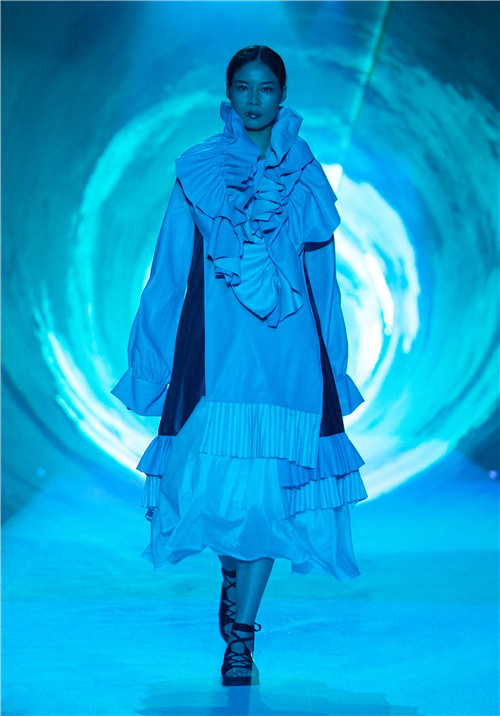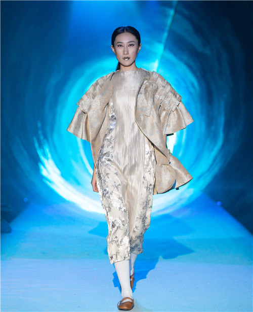 33名选手将四年的生活感悟和艺术灵感融入到自己对比赛主题的理解中,通过丰富的面料选择、多变的剪裁组合,将东方与西方、传统与前卫、简约与华美、沉静与跳跃尽情展现、融合,传递充满艺术质感的创意理念,通过T台上的件件作品,表达出新生代设计师对服装艺术的理解和追求,体现了电竞博彩平台-亚洲电竞投注平台 服装设计专业的最新教学成果,传达了服装专业人才培养与时尚产业的深入对接,创意融合技术、设计传承文化的教学理念。最终,来自罗星燕的作品《彳亍》征服在场评委,夺得金奖。
